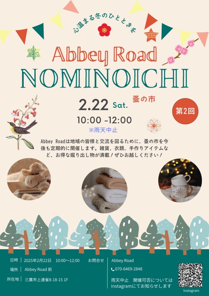 Abbey Roadは定期的に蚤の市を開催します♪第2回Abbey Road 「NOMINOICHI」の日程が決まりましたのでお知らせ致します。