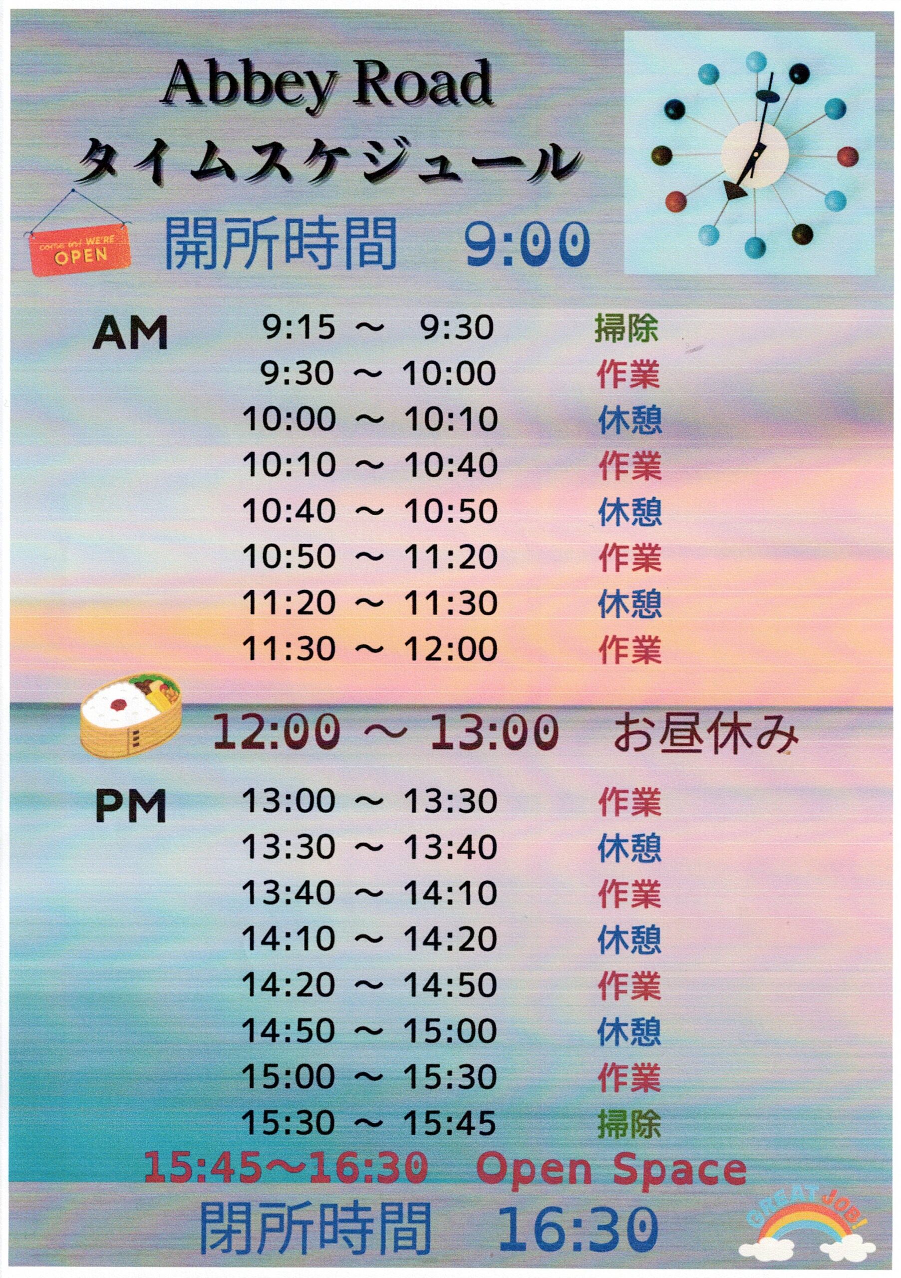 Abbey Roadは様々な工夫をしながら、皆で一丸となって高工賃を目指して活動しています。時給は定期的にホームページにアップしますので、ご確認下さい。